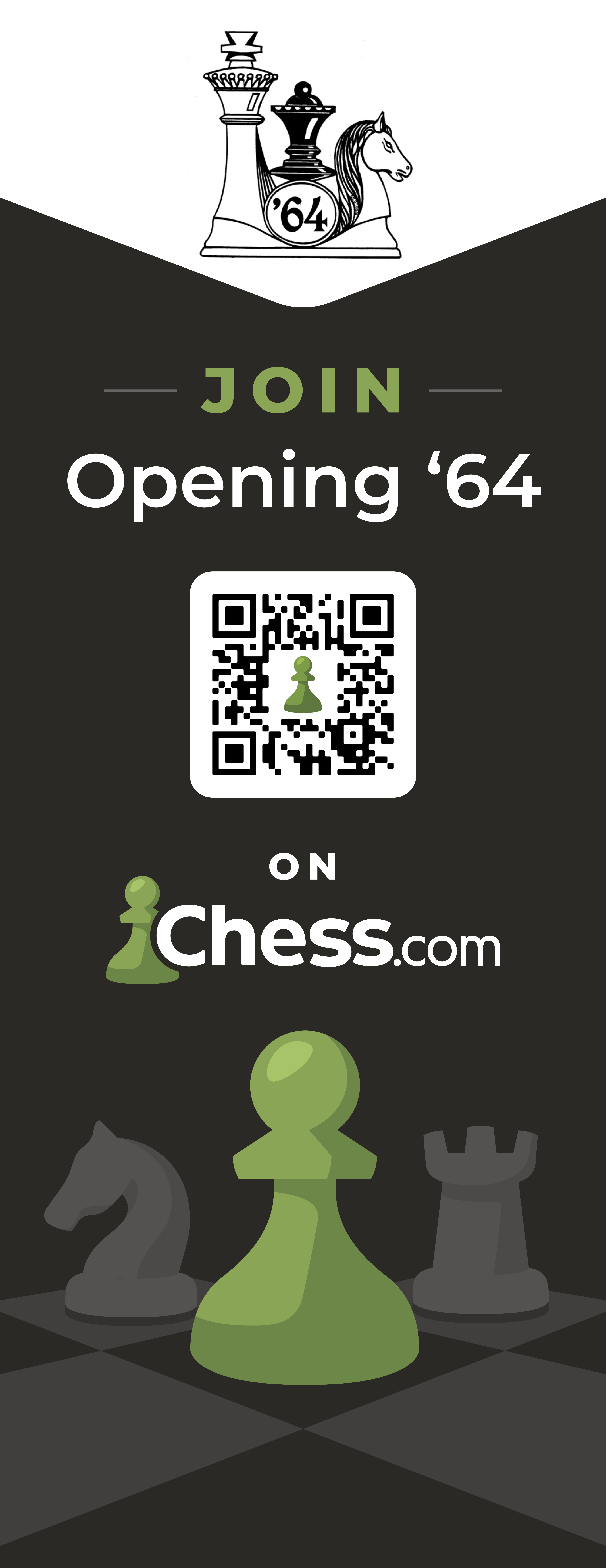Wil je lid van chess.com worden en ook Opening '64 steunen? Gebruik dan onderstaande en steun Opening '64. Indien je al lid bent van Opening '64 dan is het mogelijk om een korting van 15% te krijgen op chess.com abonnementen.